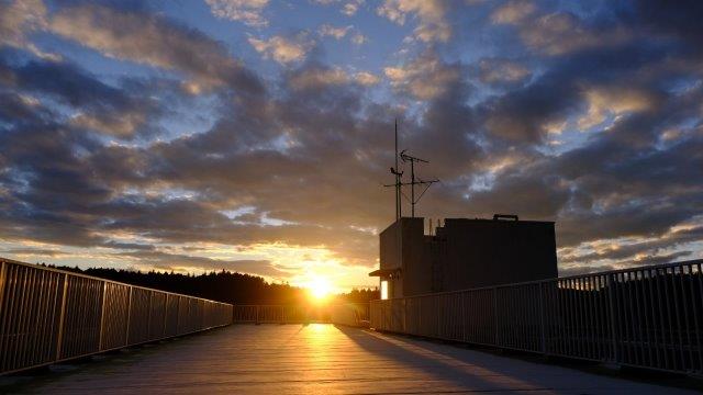 年内最後の撮影を無事終え、夕日の中で乾杯する一幕も