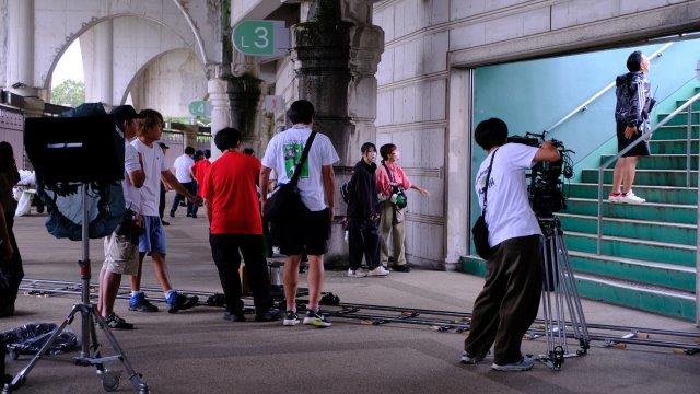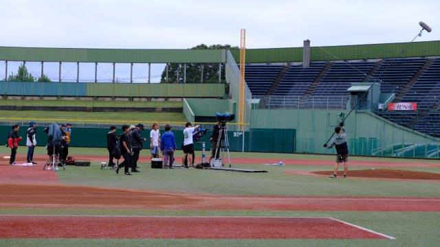 しっかりとグラウンド整備をしてから撮影に臨んでいました