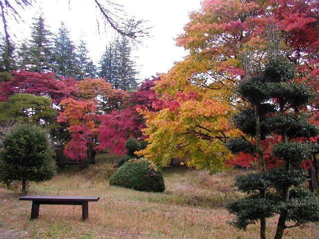 - 正門から入ると、ドウダンツツジの生垣が見え、来場者に落ち着いた印象を与えます。なだらかなスロープを上ると、広大な庭園の奥に、昭和初期の建物、研修展示館があります。また趣きのある庭園は、ノスタルジックな気分を思い起こさせます。紅葉の季節は格別です。