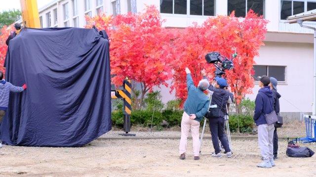 真っ赤な紅葉の木も撮影用に用意されたもの