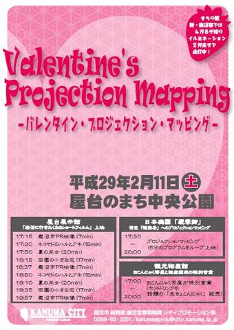 鹿沼市では、バレンタイン間近の2月11日(土)の夜に、プロジェクションマッピングやショートムービーの特別上映会を開催いたします。